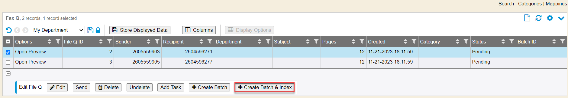 1. Add a Category description to group by a recipient group/department or other identifier (which allows for filtering within the file queue), instead of remembering a specific number to filter by. Select the Recipient from the drop down and click the “Save” button.