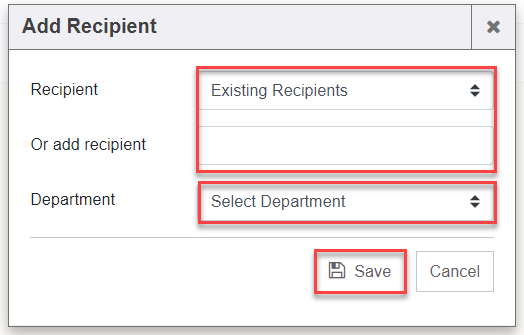 1. Select a Recipient or add a recipient and then select the department that will be mapped. Click the “Save” button.