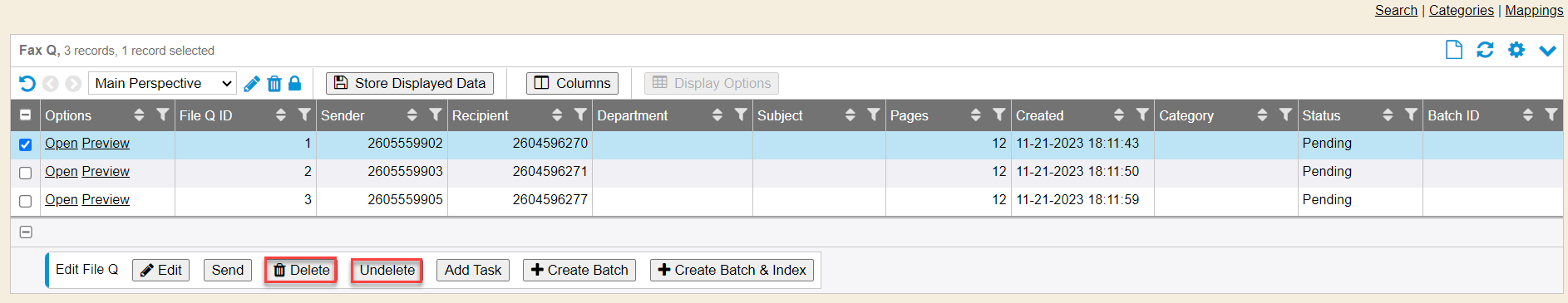 4. Undelete: Undelete from the fax queue