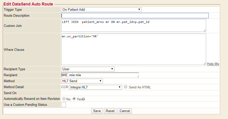 - This allows for more filtering to work with specific sets of patients. Requires some understanding of the Webchart DB schema. Generally requires MIE EDI team to build. However, manually copying Auto Route JOINs and WHERE Clauses into new Auto Routes is also possible.
